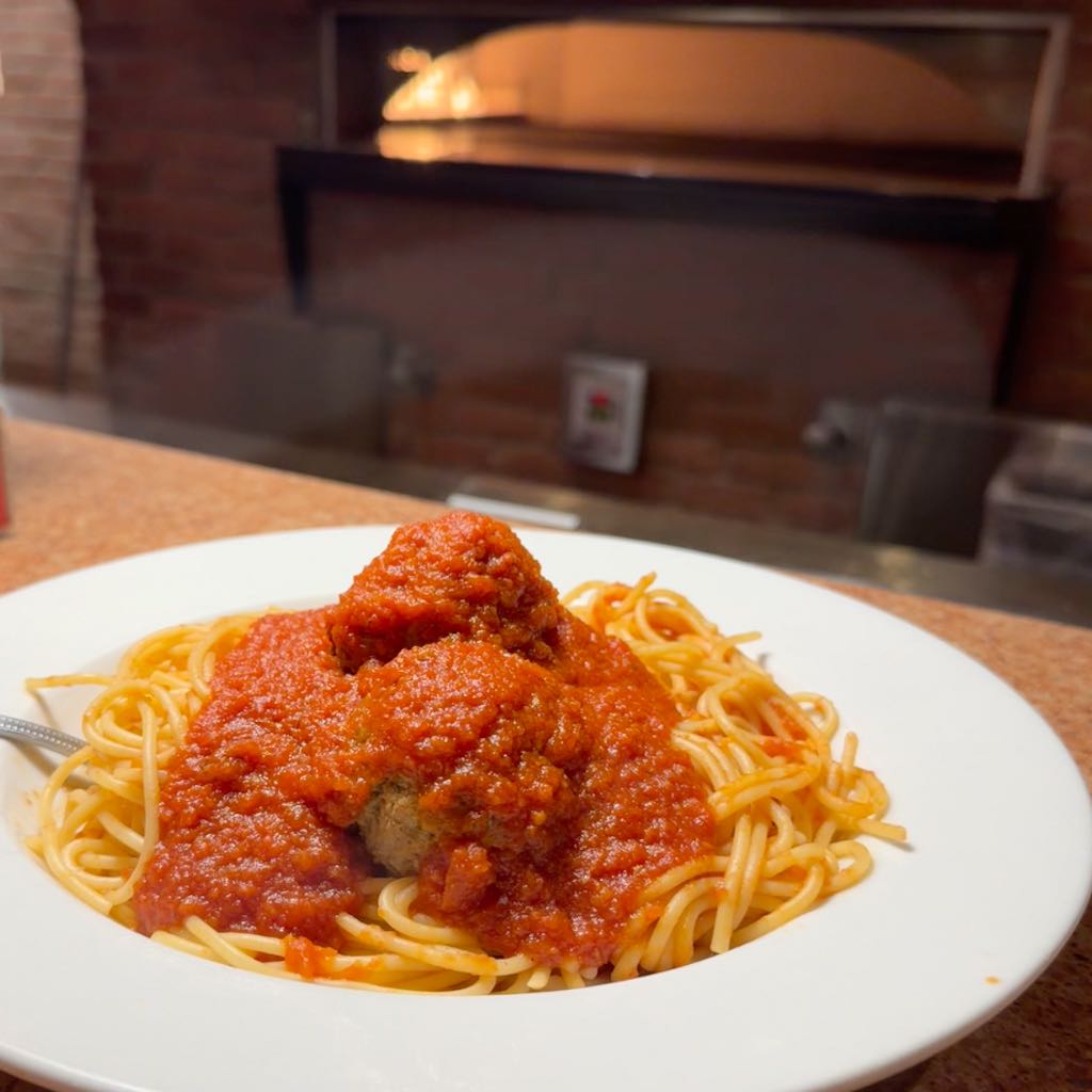 Imported spaghetti pasta tossed in a marinara sauce, served with meatballs.