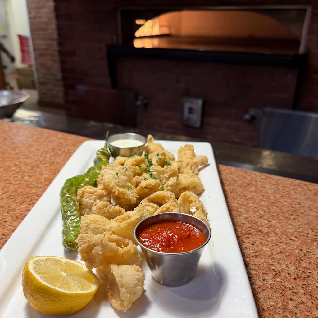 Tender fresh calamari and hot cherry pepper rings lightly floured and seasoned, then fried until golden. Served with a side of marinara sauce & peppercorn ranch.